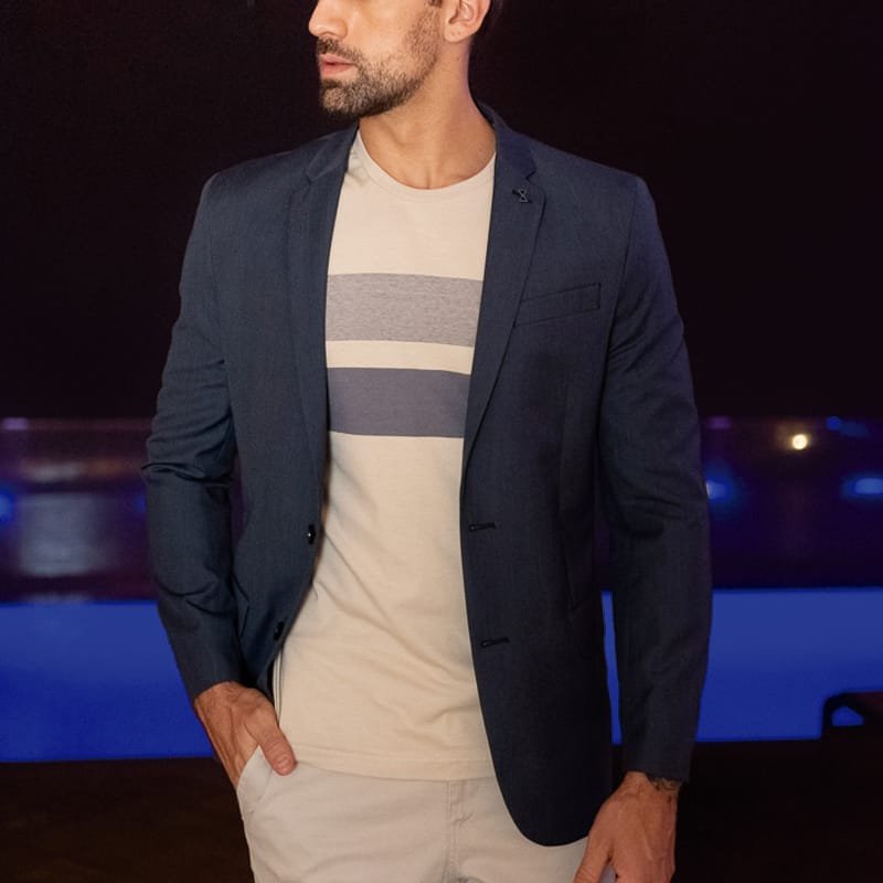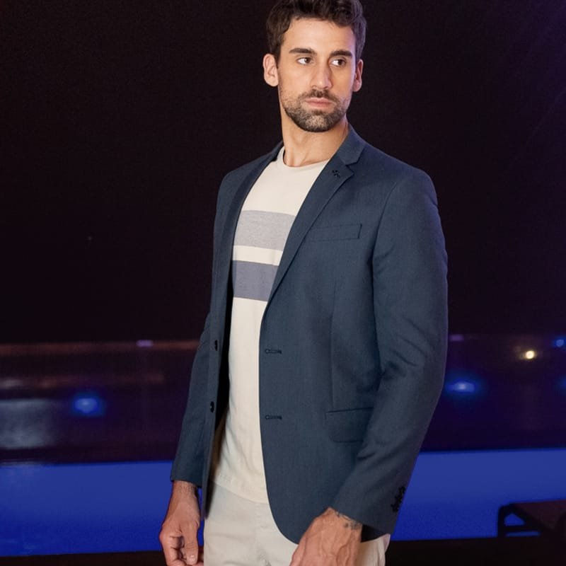 Apresentamos nosso sofisticado blazer slim em PV (poliéster-viscose), uma peça essencial para o homem moderno e elegante. Com um corte ajustado que valoriza a silhueta, este blazer oferece um visual refinado e contemporâneo. Feito com tecido de alta qualidade, proporciona conforto e durabilidade ao longo do dia. Seu design versátil permite diversas combinações, seja para eventos formais ou ocasiões mais casuais. Use este blazer com uma camisa social e calças de alfaiataria para um look elegante de trabalho, ou combine com jeans e uma camiseta para um estilo mais descontraído em momentos casuais.