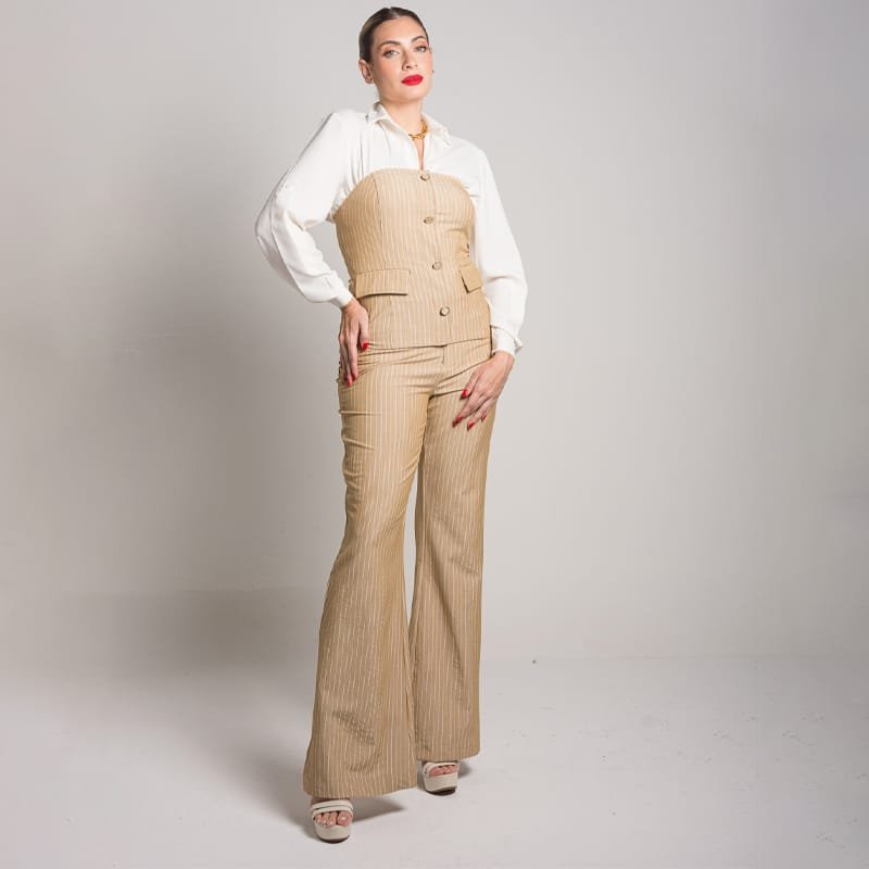 Uma peça elegante e sofisticada que combina o estilo clássico da alfaiataria com o corte moderno da calça flare. Fabricada com tecido de alta qualidade, esta calça oferece um caimento impecável e uma silhueta alongada e elegante. A flare, caracterizada por ser mais ajustada na cintura e quadril e se alargar suavemente a partir dos joelhos até a barra, adiciona um toque de estilo e sofisticação à peça.