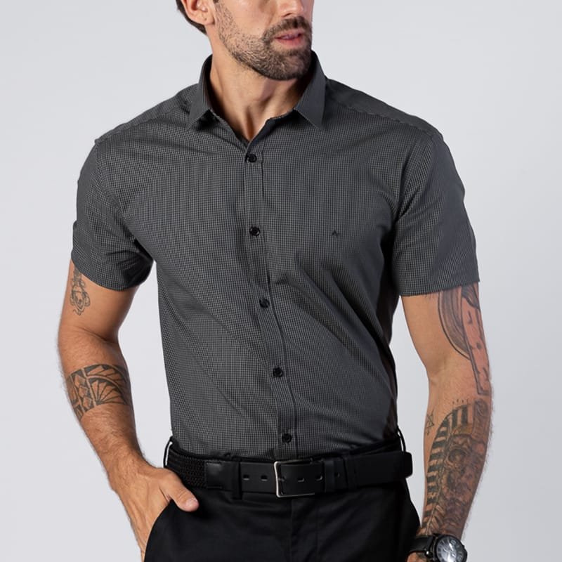 Camisa Manga Curta Micro Xadrez Aramis