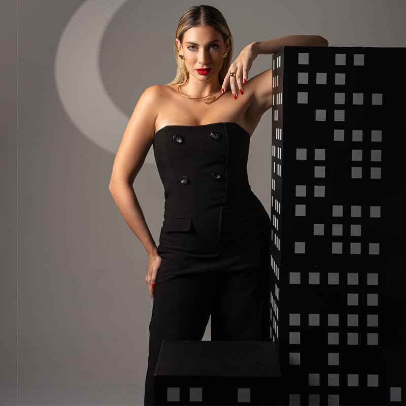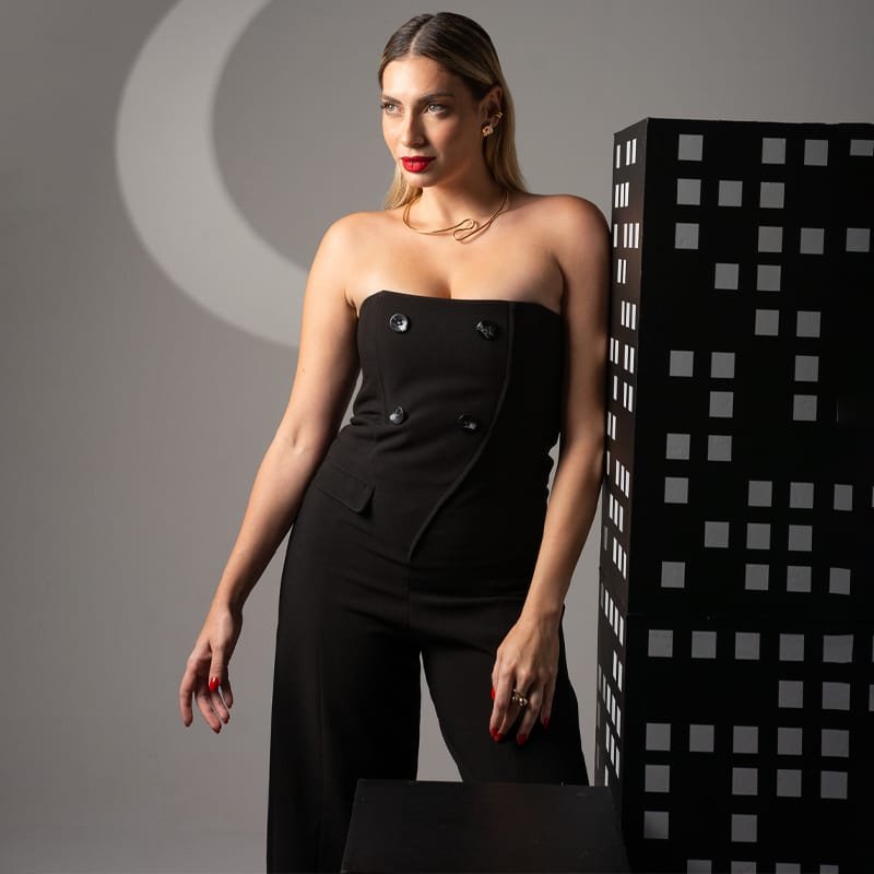 Uma peça sofisticada e elegante que combina o estilo clássico da alfaiataria com a praticidade e o conforto de um macacão. Fabricado com tecido de alta qualidade, este macacão oferece um caimento impecável e um visual refinado. A alfaiataria traz um toque de sofisticação ao design, enquanto o formato de macacão proporciona uma silhueta alongada e elegante.